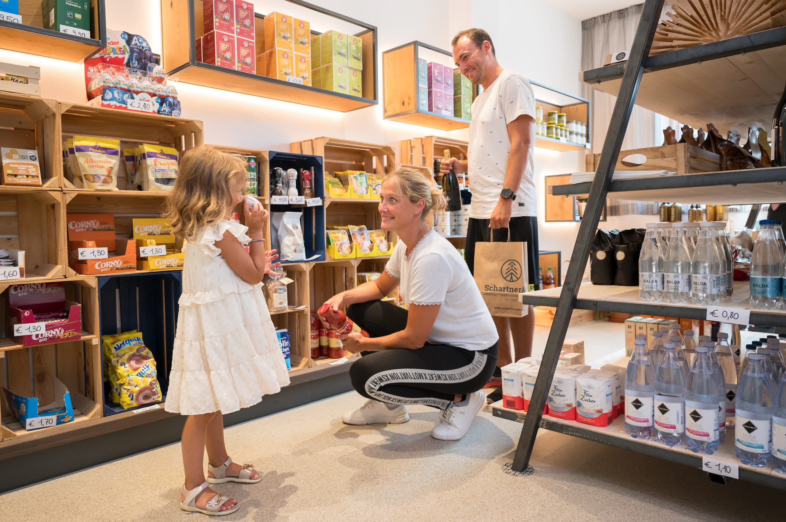 Nella nostra bottega – l’ Alm Ladele potete combinare ogni giorno la vostra colazione. I campeggiatori troveranno prodotti in grado di soddisfare piccoli e grandi appetiti. Per noi è fondamentale che tutti i nostri campeggiatori siano sodisfatti e non solo.