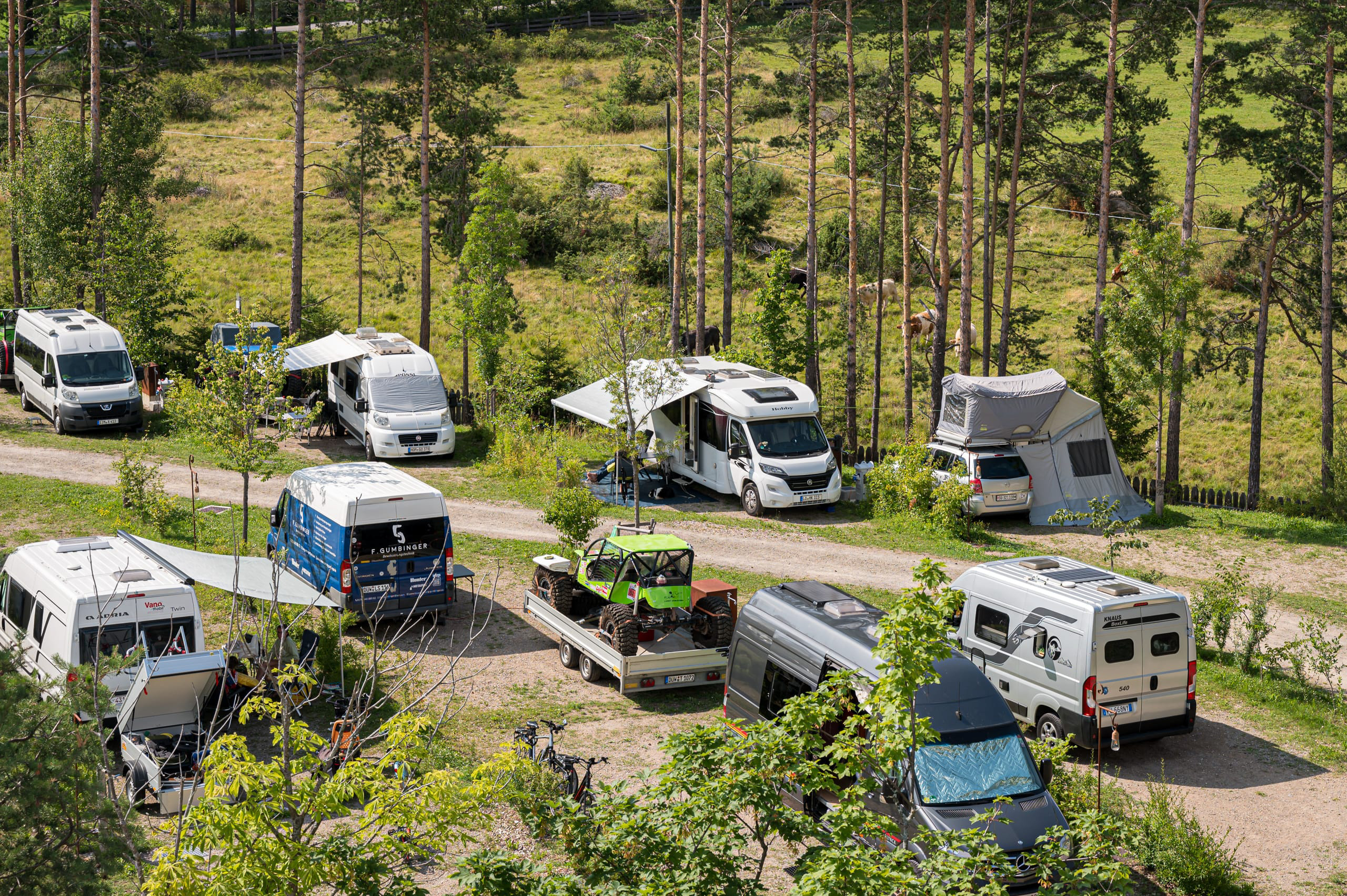 Il campeggio di Bolzano è circondato da natura, boschi e prati. L'aria fresca e la tranquillità delle montagne creano un'atmosfera rilassata.